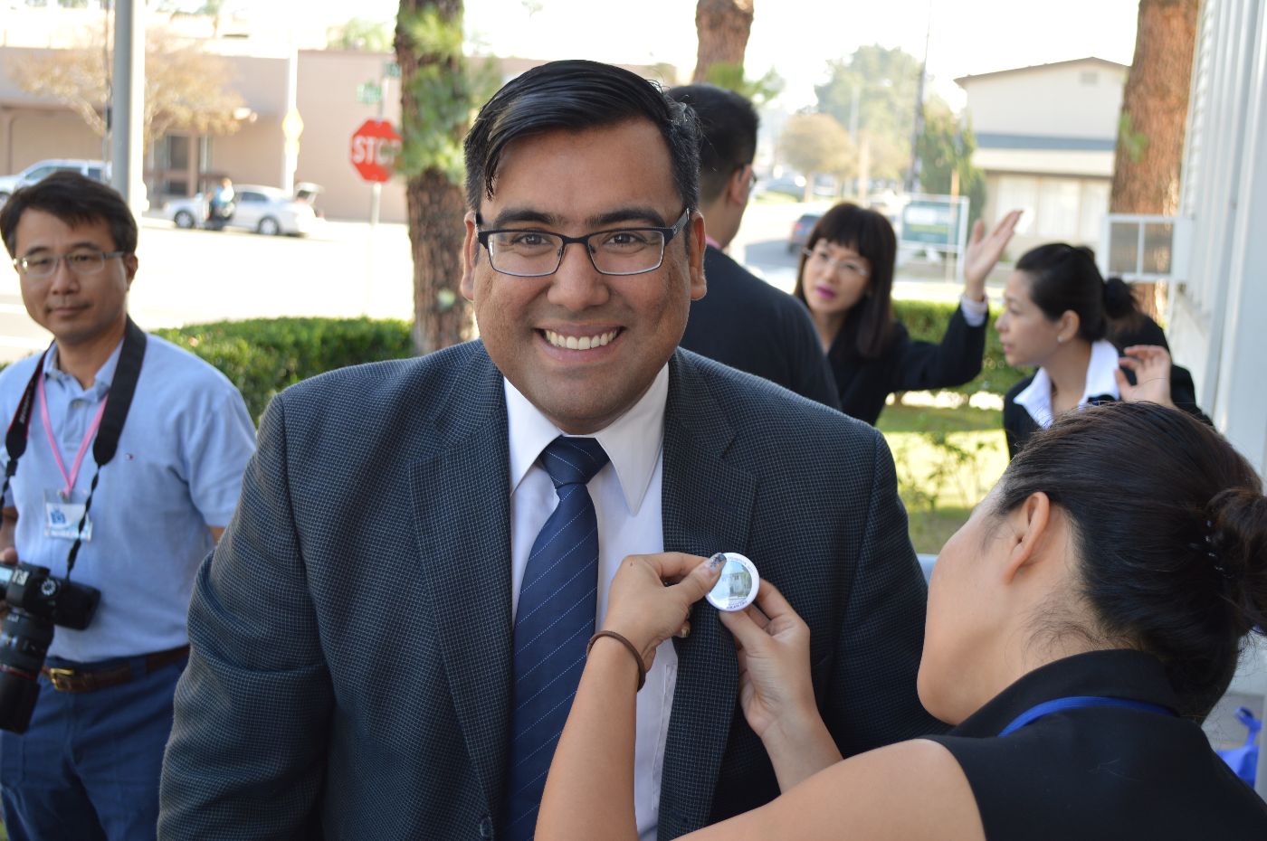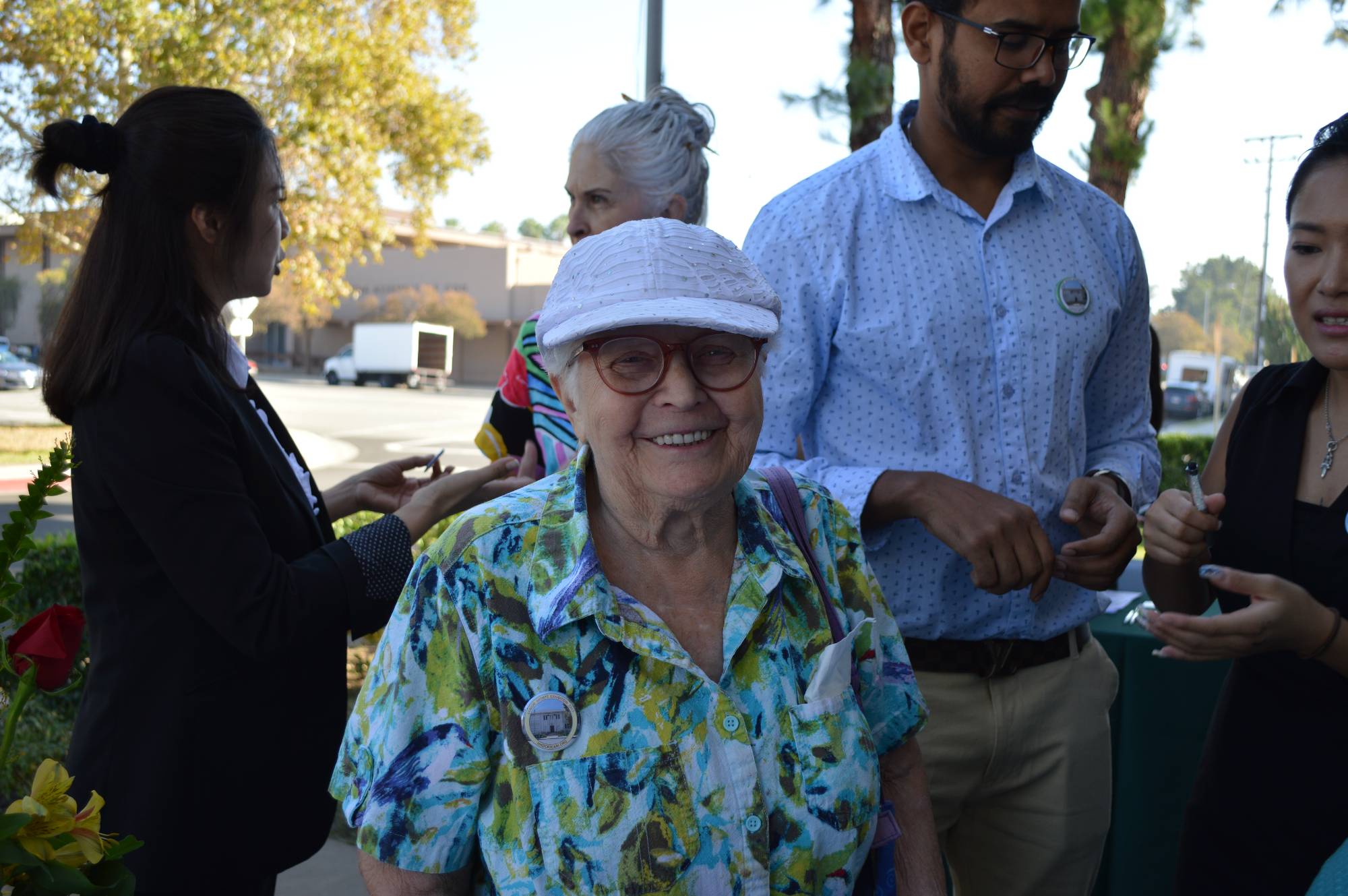 Sai Raj Kappari, a graduate student of USC Leonard Davis School of Gerontology who lives in Kingsley Manor a retirement community as an intern, shared an inspiring speech. " When our life's purpose changes from competition to contribution, it becomes a celebration, and I want to celebrate my life by taking care of people who can't take care of themselves." Mr. Kappari accompanied and cared for Ms. Gabrielle Boisson throughout the ceremony.