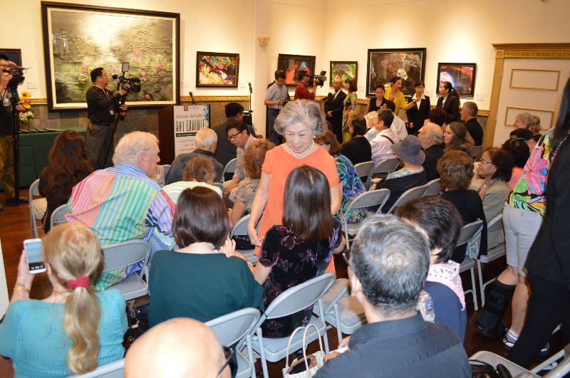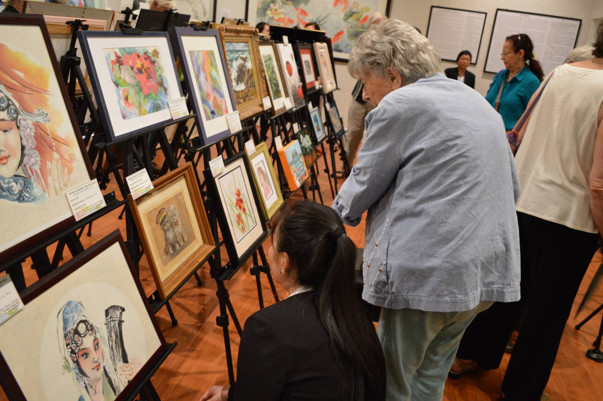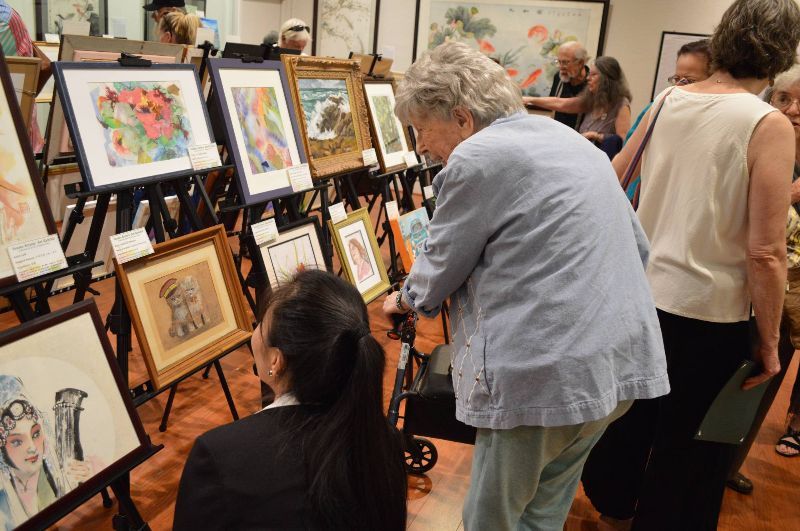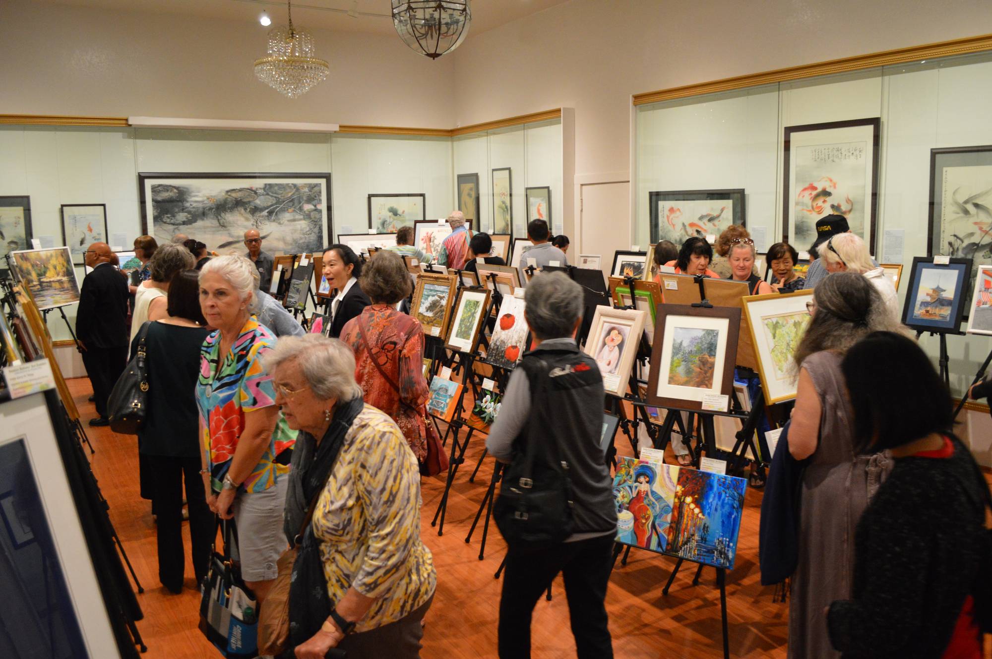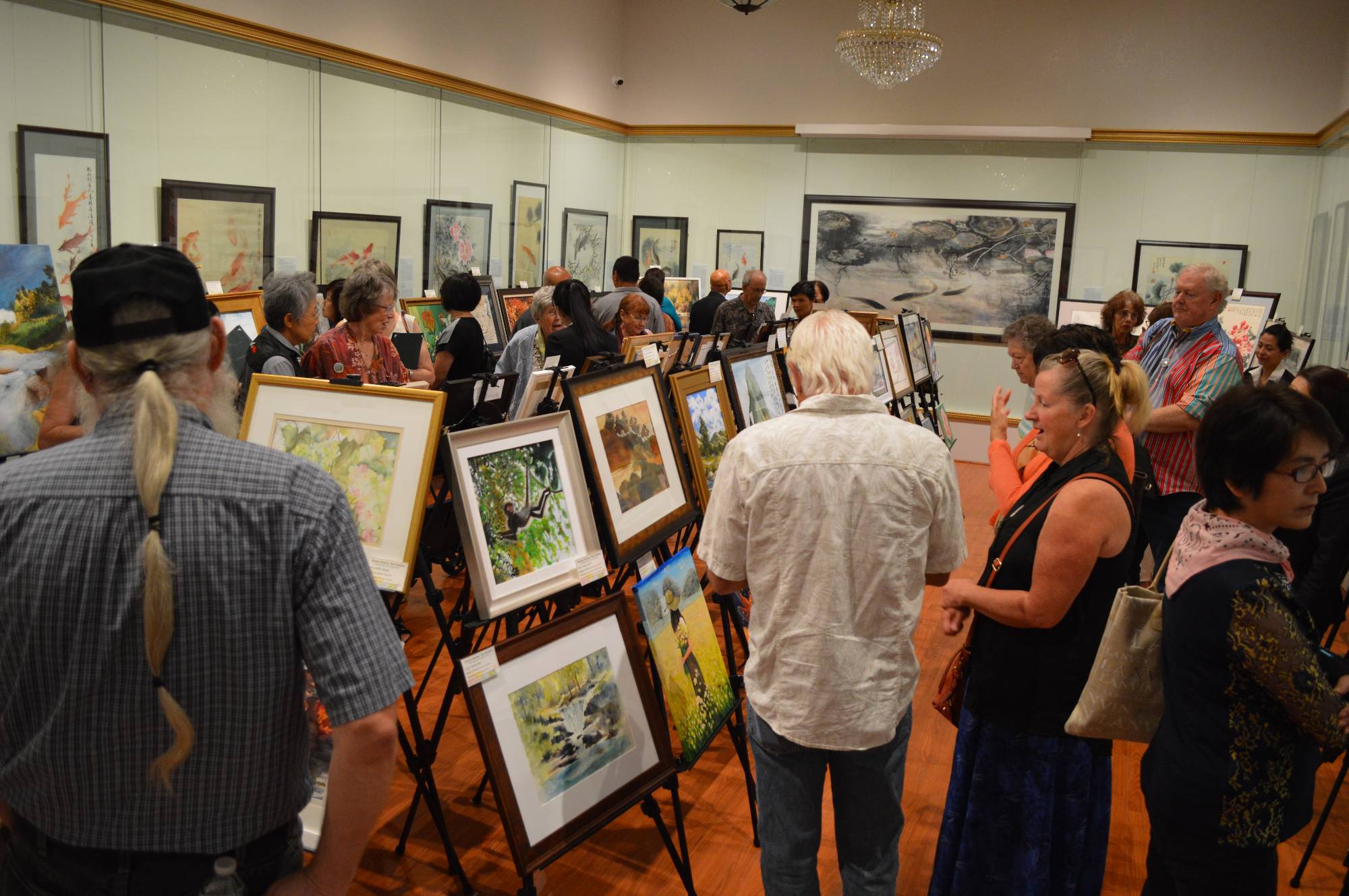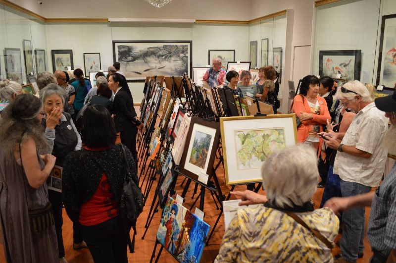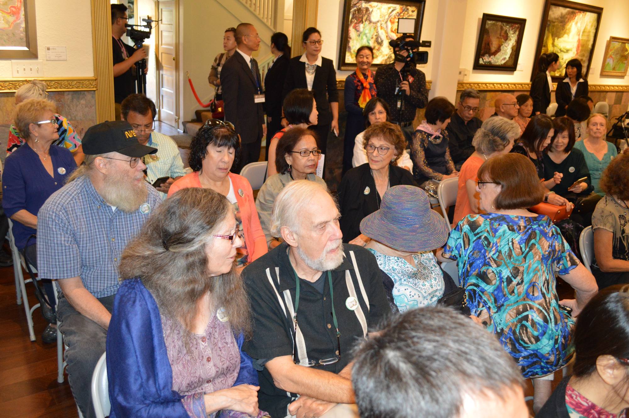 Among the many community leaders, art experts and VIPs attending the opening ceremony are Mr. Jorge A Marquez, Mayor of City of Covina, Ms. Mary Su, Mayor of City of Walnut, Dr. Maureen Kellen-Taylor, a visiting scholar of the USC’s Davis School and a senior expert in Gerontology, Mr. Gan Fuzhong, Vice President of the American Calligraphy and Painting Art Academy, Ms. Wu Hua, the Director of Chinese International Painters Association, Mrs. and Mr. Ali Tam, Sr. a Chinese painting teacher at Arcadia Community Center, and Ms Lin Guan-Ying, an outstanding painter of the Perennial Artist Association of City of Walnut.