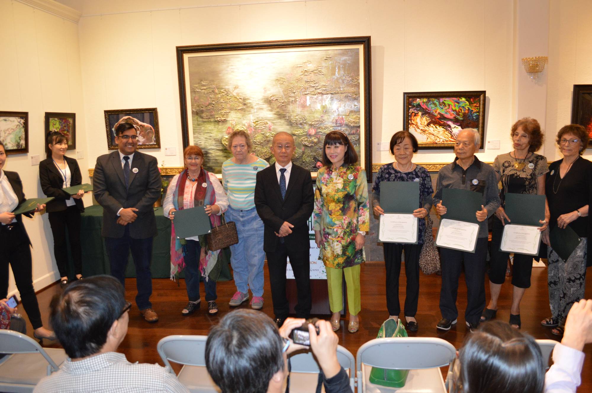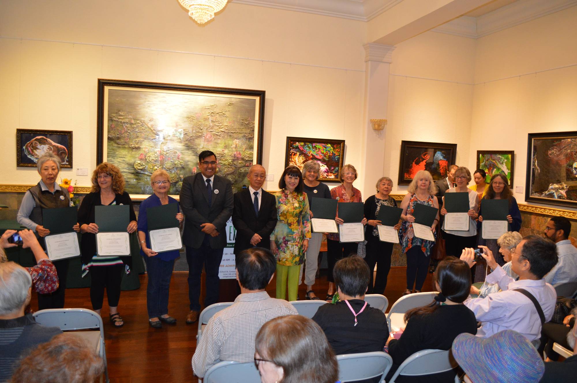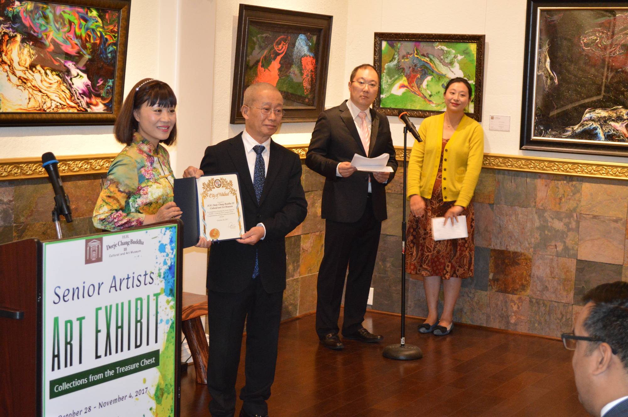 Mayor Marquez of Covina highly praised H.H. Dorje Chang Buddha III Cultural and Art Museum for holding such a meaningful art event. “It not only enriches the cultural lives of the community but also brings Chinese art and culture as well as the elegance of art by the seniors to us”, he said.