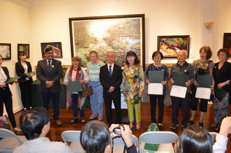 President Tyan said that although there are many art exhibits in Los Angeles, those exhibit specifically held for seniors across different races and areas are very rare. No matter they are professionals or amateurs, it is obvious from the paintings on exhibit that these silver-haired folks live very spirited and invigorating lives. They transform their unique life experiences, their expectation about human kind and the world, and their ideals into paintings and show their hearts. Seeing their paintings not only can move and inspire people, is significant in education for the mass in the society, but also can help to improve mutual understanding and integration among the various cultures and ethnicities. By holding this art exhibit, it is hoped that more seniors will attend such activities in the future.